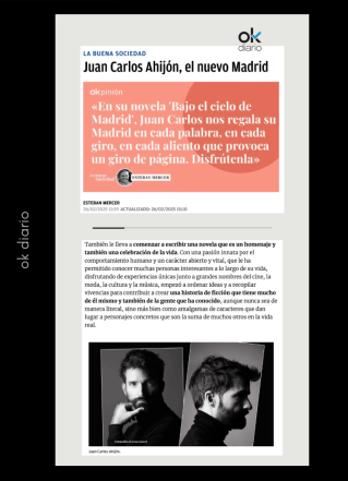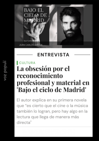 ยซCon una fulgurante trayectoria en el mundo editorial, en tan solo unos meses Juan Carlos Ahijรณn, Director de convenientmadrid, ha conseguido hacer llegar su primera novela ยซBajo el cielo de Madridยป a muchos lectores de una manera poco convencional consiguiendo resultados brillantes.ยป